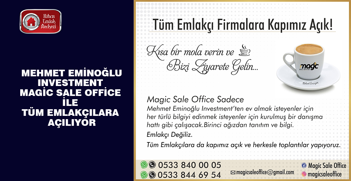 Kıbrıs inşaat sektörüne prestijli konut projeleri kazandıran Mehmet Eminoğlu Investment, Magic Sale Office ile iddialı bir dönemi başlatıyor. İşte detaylar…