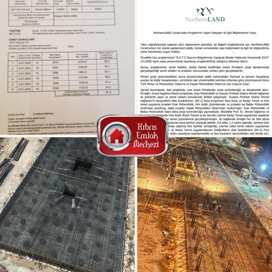 Depreme karşı yapılması gereken inkar edip yok saymak mı, yoksa gereken tedbirleri almak mı? Birçok inşaat firması sessizce sürecin unutulmasını beklerken, Northernland Construction yaptığı çalışmaları dolu dolu bir rapor ile paylaştı. Fore kazıktan radye temele, beton raporlarından çalıştığı profesyonellere kadar birçok detay var içinde. Devamı Kıbrıs Emlak Merkezi’nde.